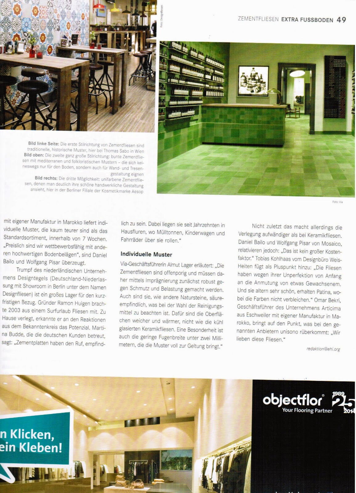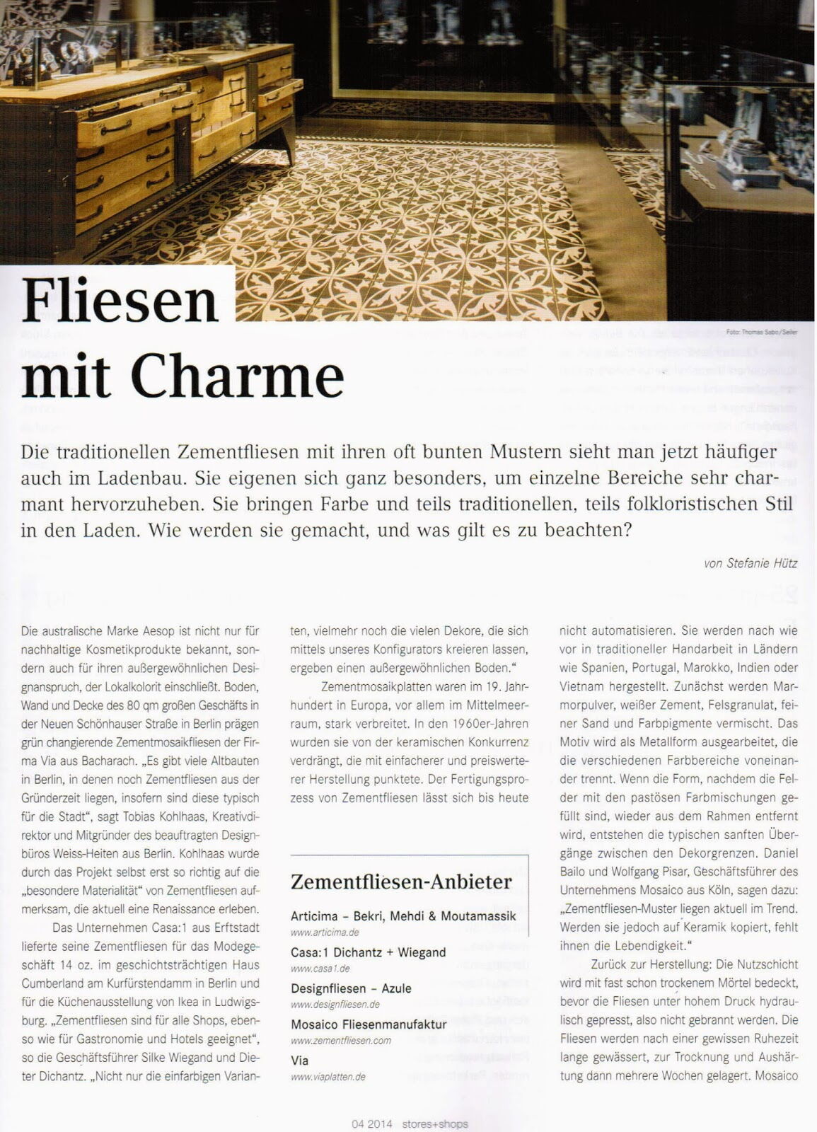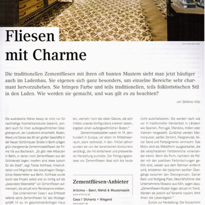 Casa:1 Zementfliesen im Magazin „stores+shops“ – September 2014