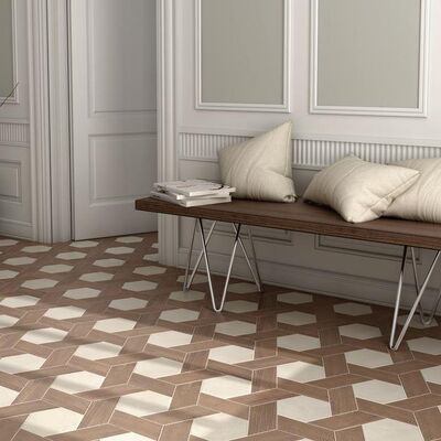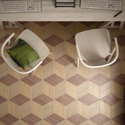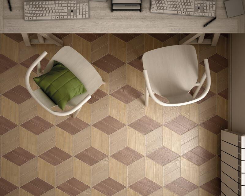 Außergewöhnlich, kleinformatig und schön, aber keine „Dielenfliesen“ – Das war unser Ziel bei der Suche nach Fliesen in Holzoptik. Bei EQUIPE in Spanien sind wir auch für diesen Wunsch fündig geworden. Die Fliesen in Holzoptik greifen natürliche Holzstrukturen gut auf und sind entweder sechseckig und rautenförmig. Das erlaubt vielfältige Verlegeoptionen, und durch das Mischen von verschiedenen Farben und Formaten kann man attraktive Muster auf den Boden zaubern.