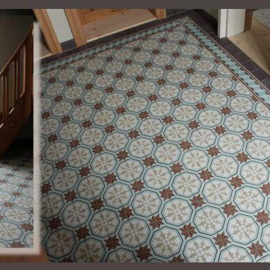 Letzteres war übrigens eine ganz besondere Herausforderung, denn an den Wunschfliesen dieser sehr netten und geduldigen Kundin war alles neu: Format, Dekor und Farbe. Sie hatte die Fliesen in einem Hausflur gesehen, fotografiert und uns geschickt. Das Foto war die einzige Referenz, und wir haben so lange ausprobiert und neu gemischt, bis alles stimmte. In der Zwischenzeit konnte der Rahmen gebaut und die Schablone angefertigt werden. Am Ende waren alle glücklich über das Ergebnis – gut Ding will eben auch heute noch Weile haben.