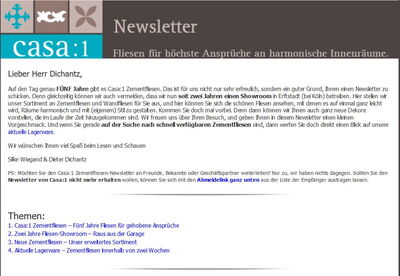 Aktueller Newsletter von Casa:1