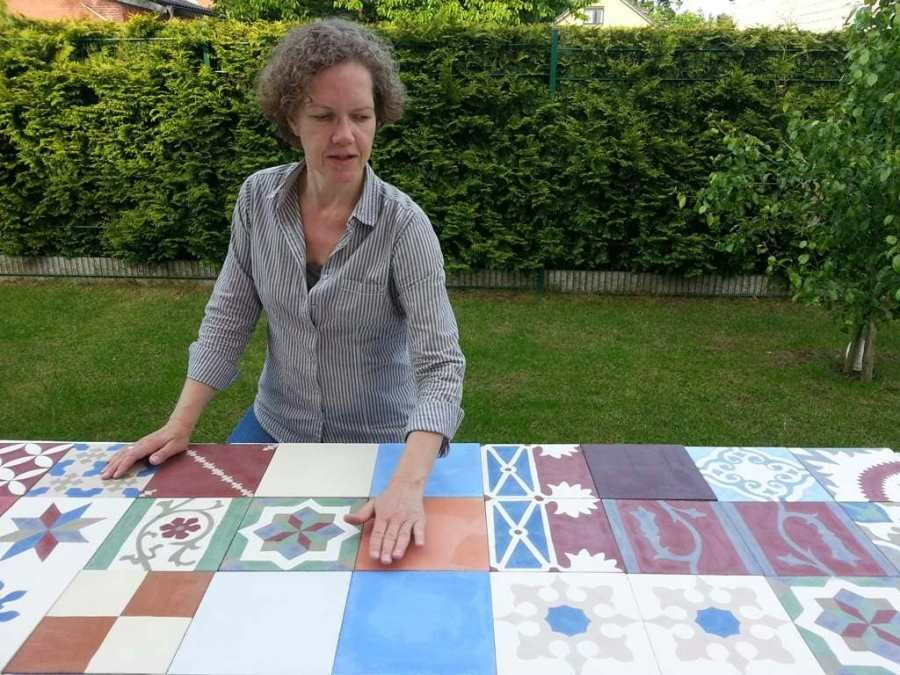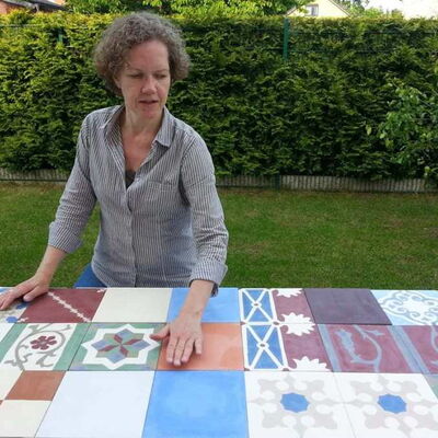 Wir lernten, dass diese Fliesen vor allem in Spanien und Marokko hergestellt werden, und zwar einzeln in Handarbeit. Wir lernten, dass sie ihre grobschlächtige Bezeichnung dem Zement verdanken, der die Trägerschicht bildet, auf der die aus Marmormehl und Farbpigmenten bestehende Dekorschicht ruht. Wir lernten, dass Zementfliesen unter hohem Druck gepresst und nicht gebrannt werden und dass sie imprägniert werden müssen, um gegen Schmutz geschützt zu sein. Aber wo sollten wir sie herbekommen?