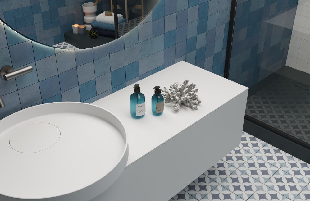Die bei uns erhältlichen Badezimmerfliesen stehen sowohl als Zement- als auch als keramische Fliesen zur Auswahl. Insbesondere unsere handgefertigten Zementfliesen überraschen mit intensiven Farben, die durch das besondere Herstellungsverfahren gelingen. Entsprechend behandelt und mit der richtigen Pflege können auch diese Fliesen ohne Einschränkung im Badezimmer genutzt werden. Doch nicht nur die Farben, sondern auch Ornamente, Muster und Kontraste machen unsere Badezimmerfliesen zum Highlight Ihres Zuhauses. Das gilt sowohl für die handgefertigten Zementfliesen als auch für Badezimmerfliesen aus robustem Feinsteinzeug oder aus Steingut.