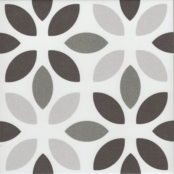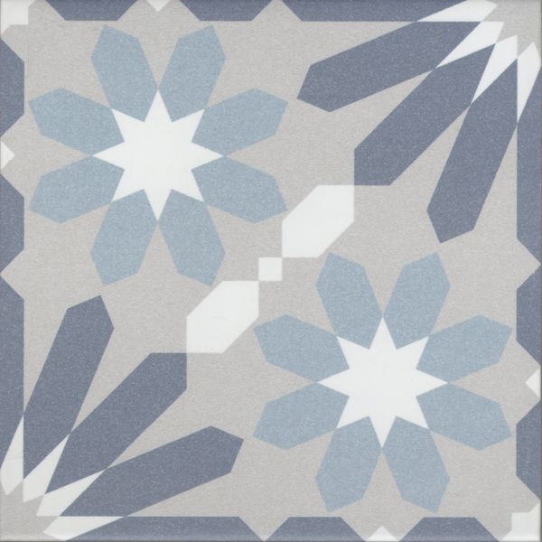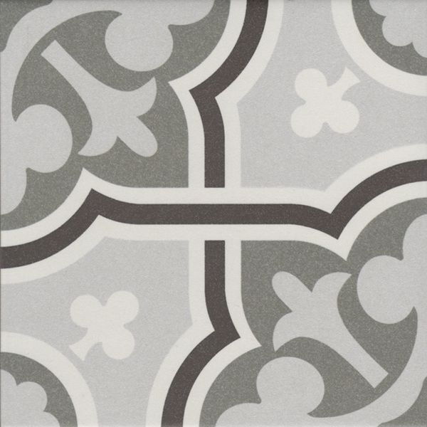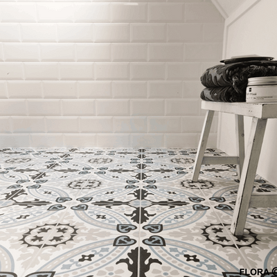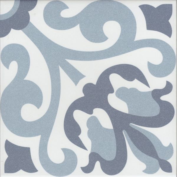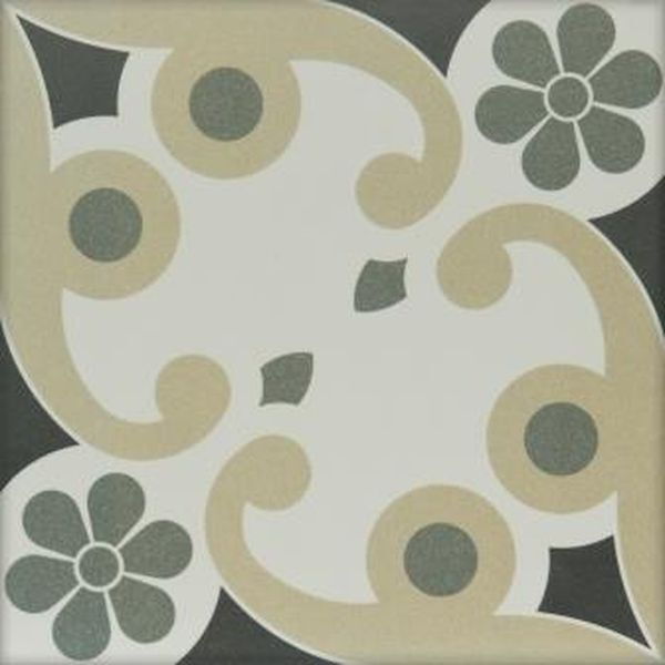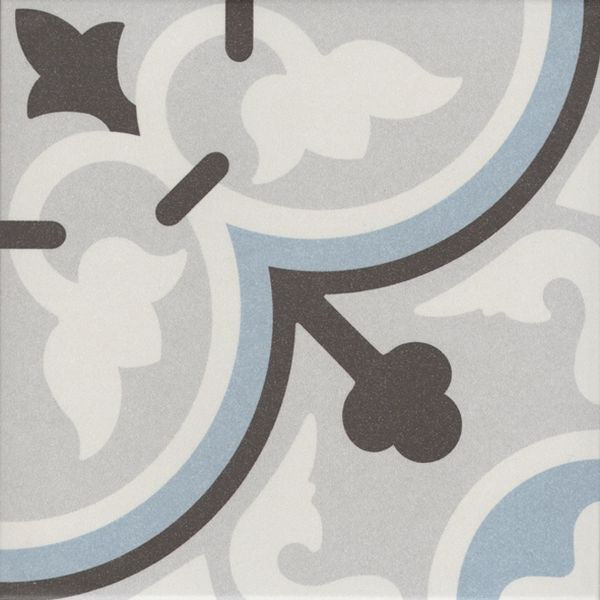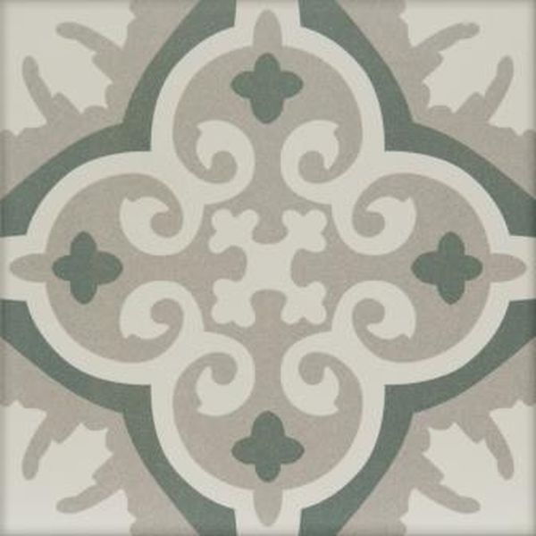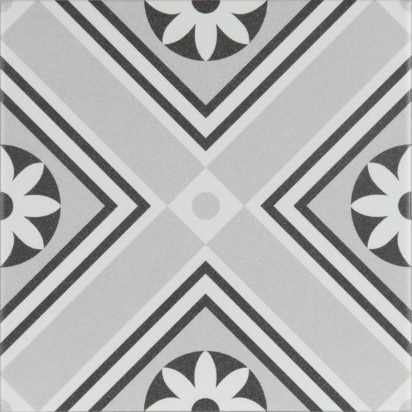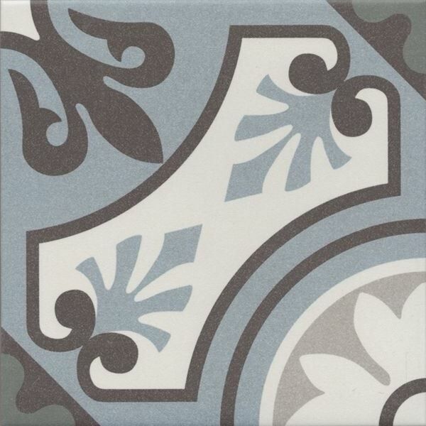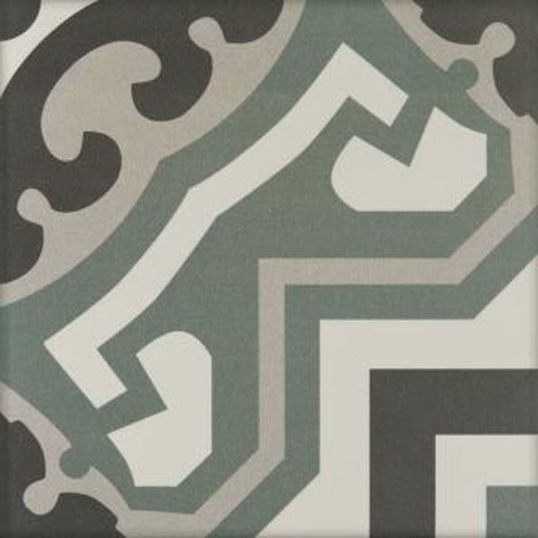 Feinsteinzeugfliesen mit Dekor im Zementfliesen-Stil (Zementfliesenoptik). Format: 20 x 20 cm, Dicke: 8 mm. Die Fliesen der Serie La Madeleine von REVOIR PARIS sind nur in vollen Quadratmetern erhältlich. Rutschhemmung: R9, Abriebfestigkeit: PEI4.*