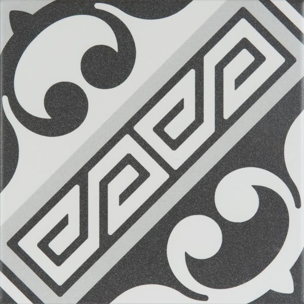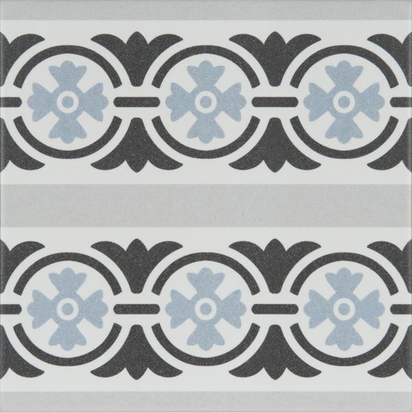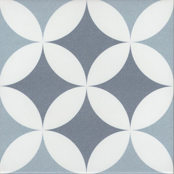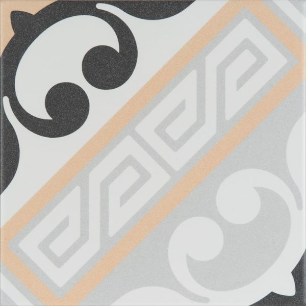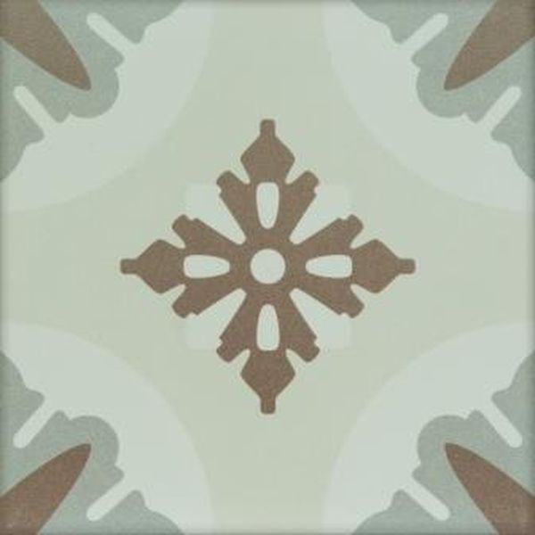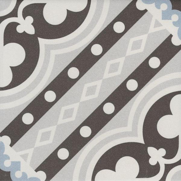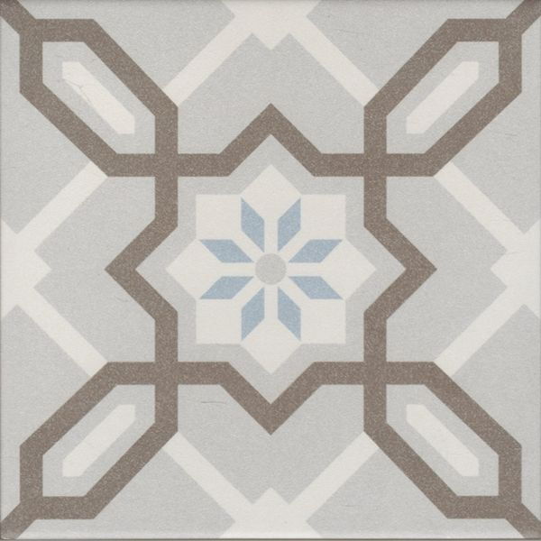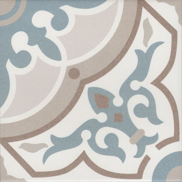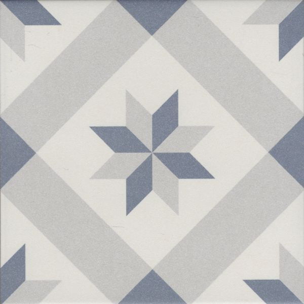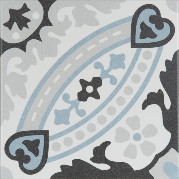 Feinsteinzeugfliesen mit Dekor im Zementfliesen-Stil (Zementfliesenoptik). Format: 20 x 20 cm, Dicke: 8 mm. Die Fliesen der Serie La Madeleine von REVOIR PARIS sind nur in vollen Quadratmetern erhältlich. Rutschhemmung: R9, Abriebfestigkeit: PEI4.*