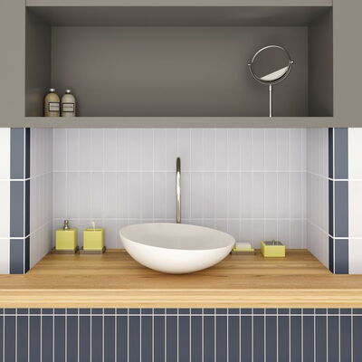 Bodenfliesen aus Feinsteinzeug im Langformat 6,3 x 25,5 cm. Auch als Wandfliesen geeignet. Diese Fliesen sind in Einheiten von 1,22 Quadratmetern (76 Fliesen) erhältlich. Rutschhemmung: R10B, Abriebfestigkeit: PEI4 (Black, Indigo: PEI3).*