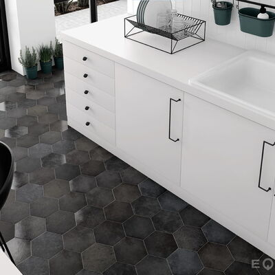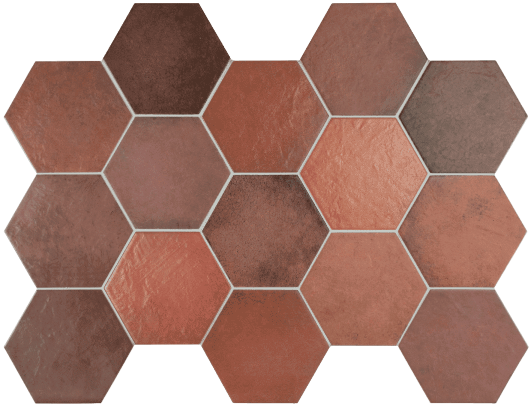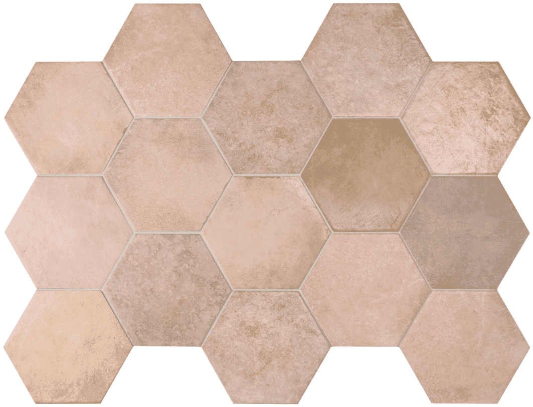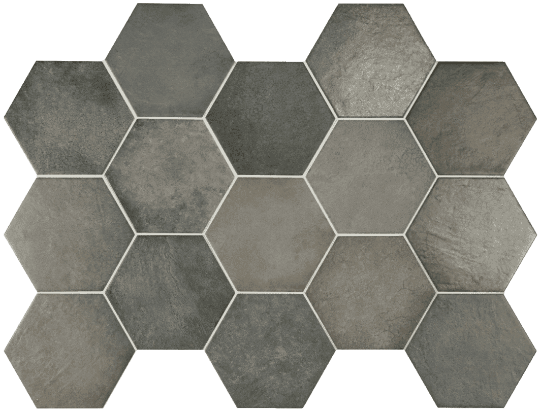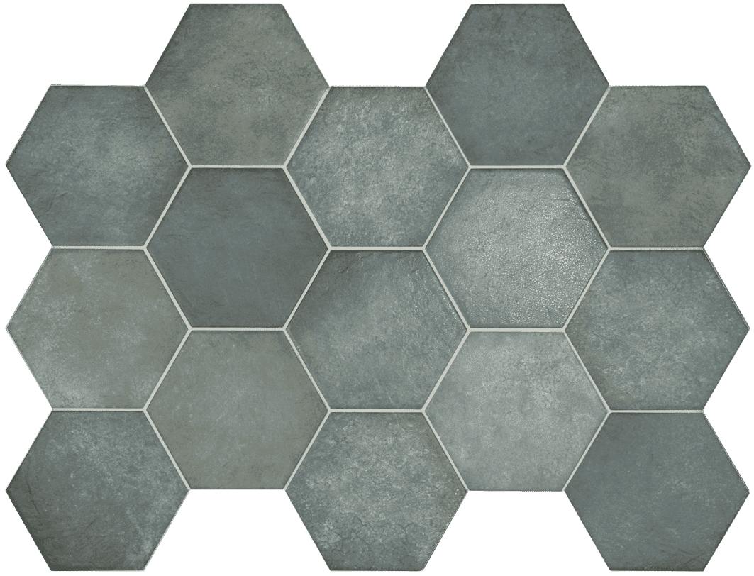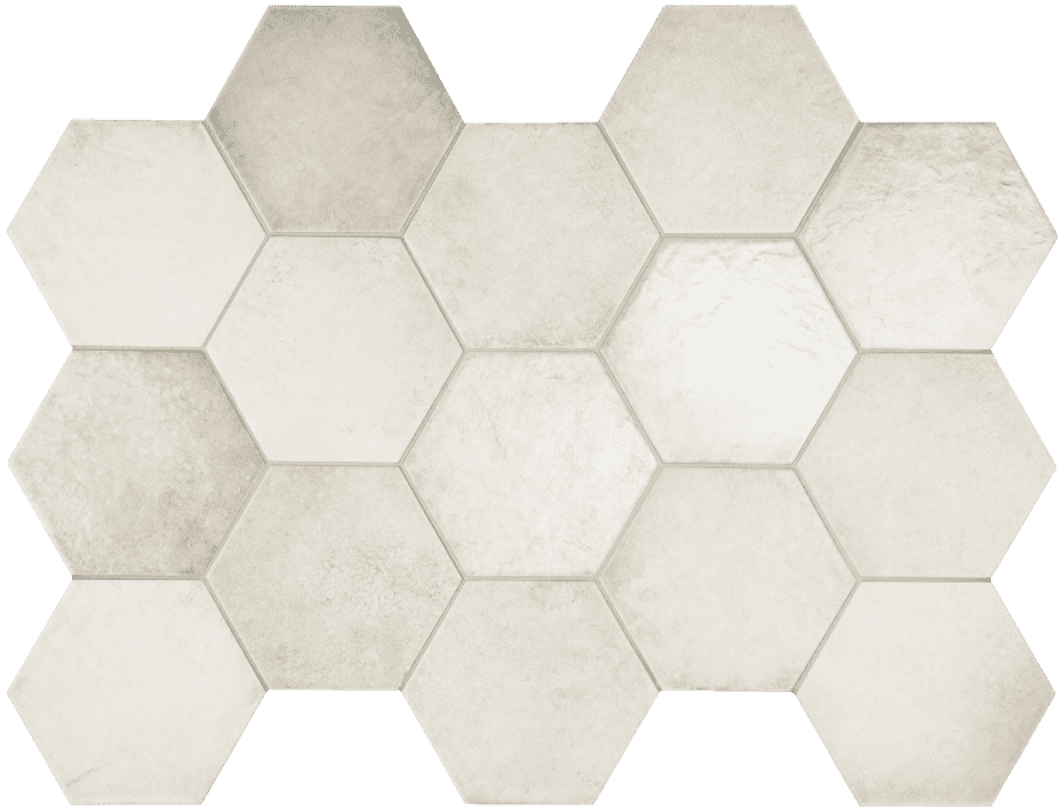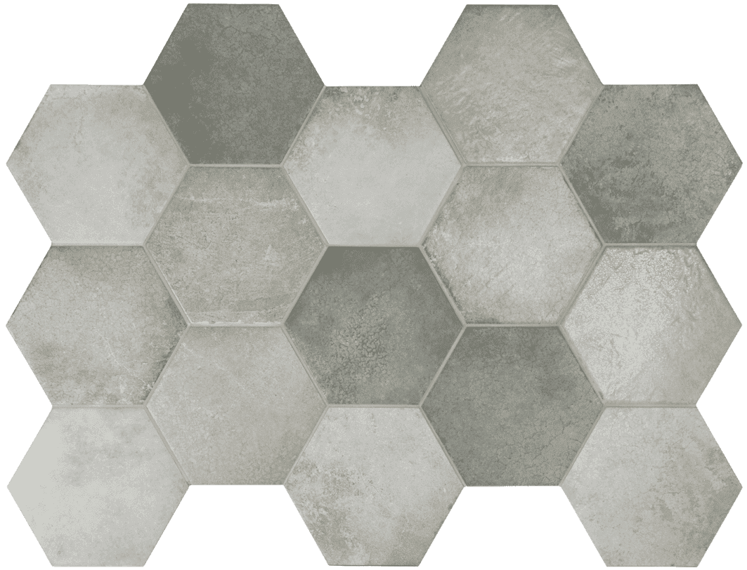 Feinsteinzeugfliesen im klassischen Sechseckformat. Einfarbige Zementoptik mit verschiedenen Farbschattierungen. Format: 17,5 x 20 cm. Bei Bestellungen bitte die genaue Bezeichnung angeben. Rutschfestigkeit: R9-A*
