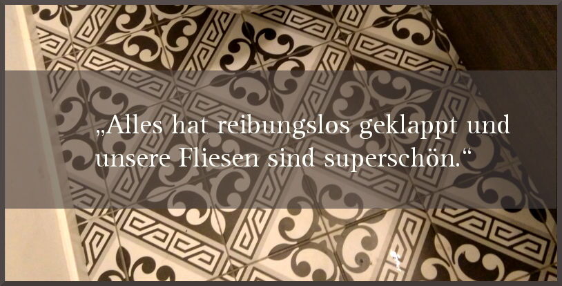 Kundenreferenz Casa:1 Fliesen: "Alles hat reibungslos geklappt und unsere Fliesen sind superschön." -