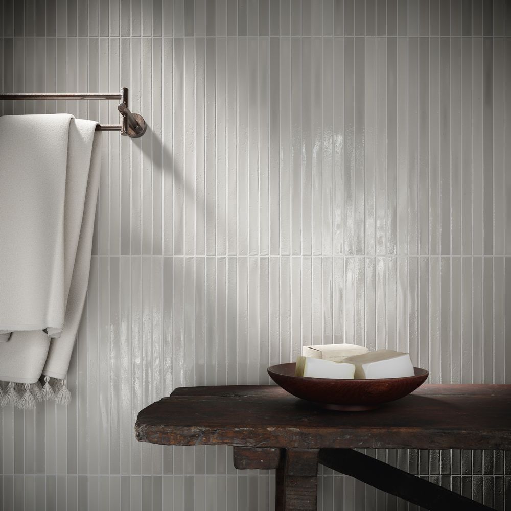 Wandfliesen im Format 2 x 45 cm. Vormontiert auf Matten bestechen diese schmalen Fliesen nicht nur durch ihre außergewöhnliche Form, sondern auch durch ihre Oberfläche: Mit Craquelé-Glasur in kräftigen Farben oder eher dezent mit glatter Glasur schaffen sie durch ihre kräftigen Nuancen ein unvergleichliches Farbenspiel an allen Wänden. Erhältlich in vollen Kartons: LongStick 48 Fliesen / 8 Matten à 6 Fliesen (0,48 m²/Karton), ShortStick 234 Fliesen / 9 Matten à 26 Fliesen (0,77 m²/Karton).