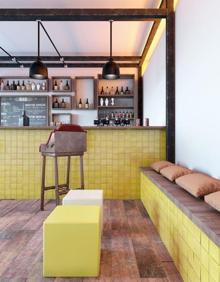 Auch Fliesen in kleinen Formaten und kräftigen Farbtönen haben längst Einzug gehalten in Hotels, Restaurants, Kneipen und Cafés. Vor allem die kleineren Fliesen erleben auch im gewerblichen Sektor ein Revival, weil sie Zimmern, Gasträumen, Bädern und Toiletten ein gleichermaßen lebhaftes wie angenehmes Ambiente verleihen. Dies gilt insbesondere für Wandfliesen, doch auch für den Boden wird die Auswahl an geeigneten Fliesen immer größer.