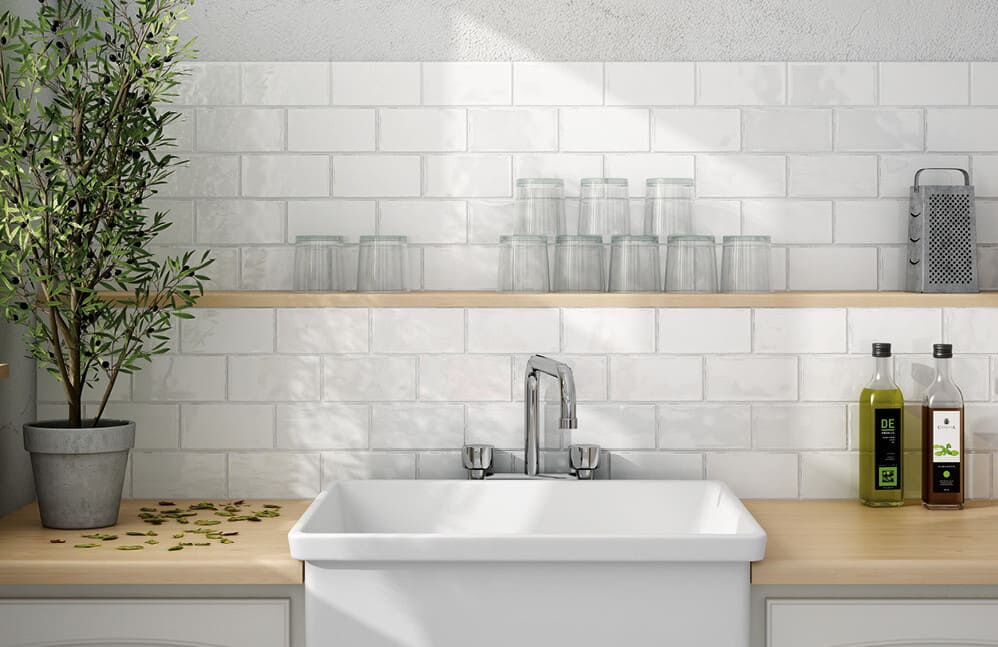 - Keramische Wandfliesen (Steingut): Diese gebrannten Retro-Fliesen sorgen für den Charme der Vergangenheit durch kleine Formate, unregelmäßige Formen und craquelierte Oberflächen.