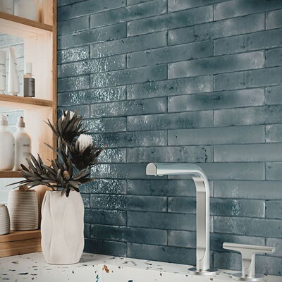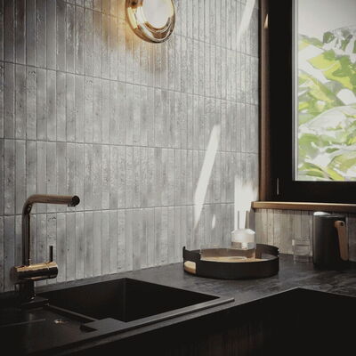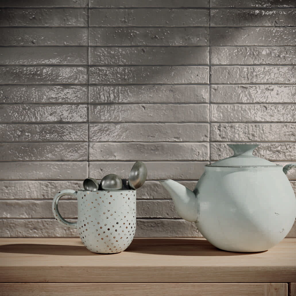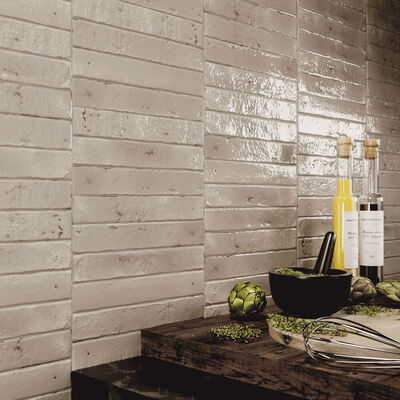 Wandfliesen im Format 3,8 x 23,5 cm mit rustikaler und doch edler Anmutung. Design-Neuheit! Verschiedene Ausführungen (glänzend, matt, craqueliert) und Farben. Bei Bestellungen bitte Oberflächenbeschaffenheit und Farbe angeben.