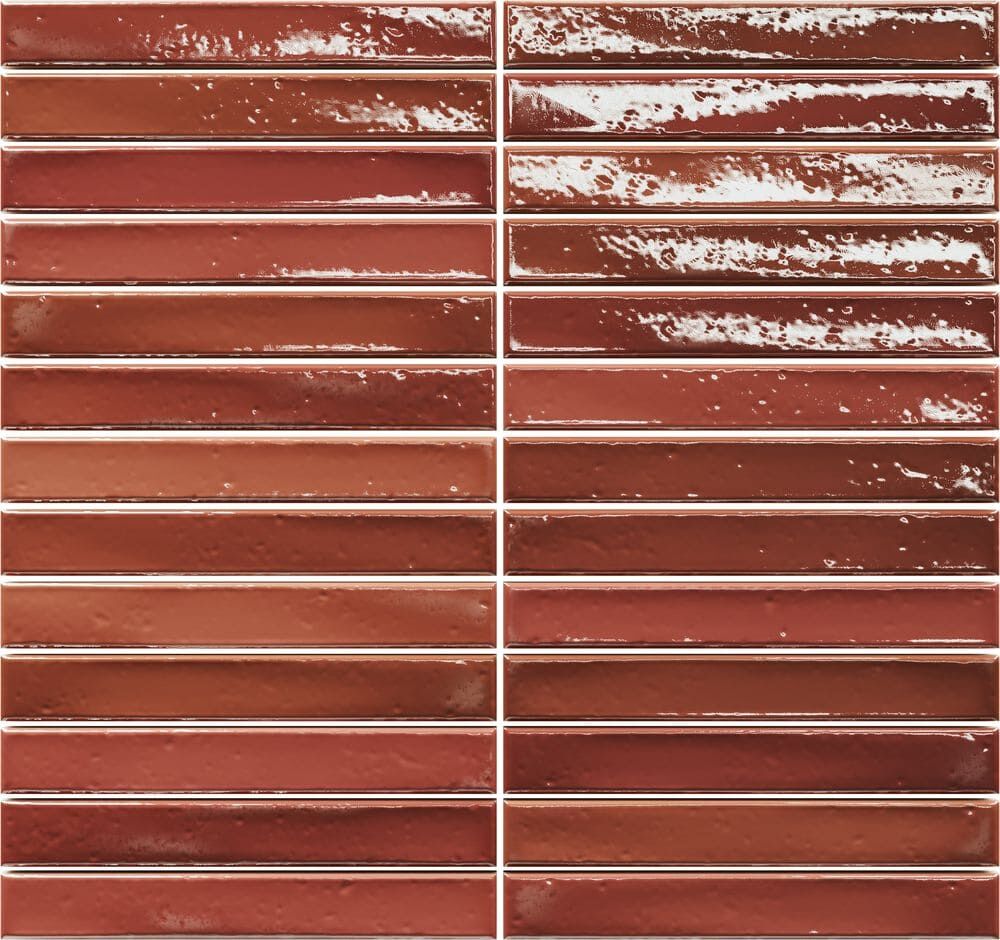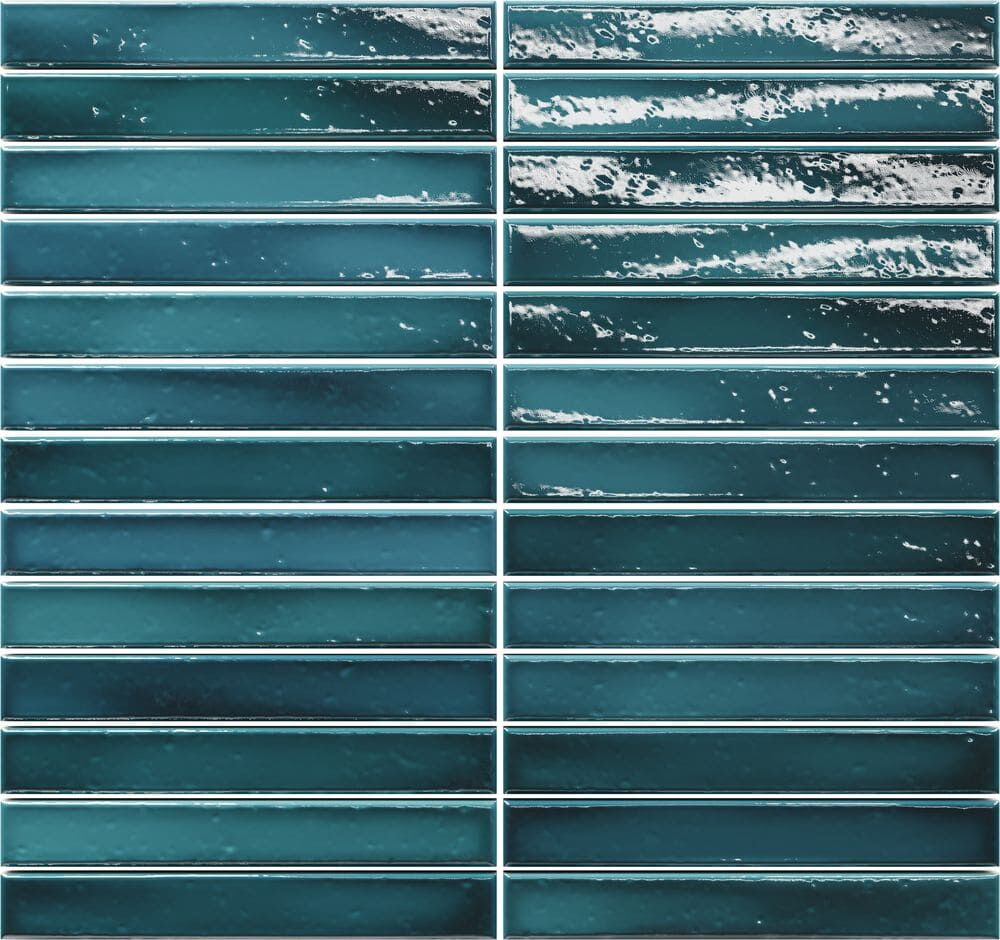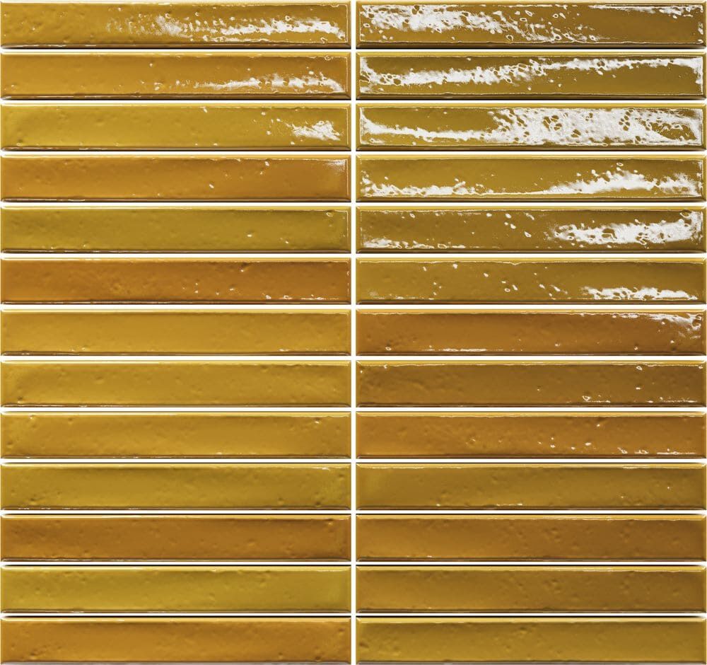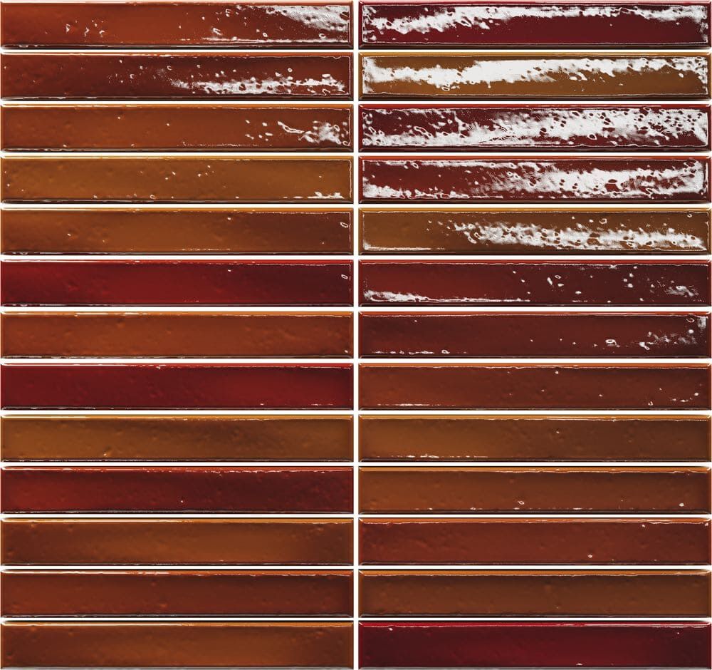 Wandfliesen im Format 2 x 45 cm. Vormontiert auf Matten bestechen diese schmalen Fliesen nicht nur durch ihre außergewöhnliche Form, sondern auch durch ihre Oberfläche: Mit Craquelé-Glasur in kräftigen Farben oder eher dezent mit glatter Glasur schaffen sie durch ihre kräftigen Nuancen ein unvergleichliches Farbenspiel an allen Wänden. Erhältlich in vollen Kartons: LongStick 48 Fliesen / 8 Matten à 6 Fliesen (0,48 m²/Karton), ShortStick 234 Fliesen / 9 Matten à 26 Fliesen (0,77 m²/Karton).