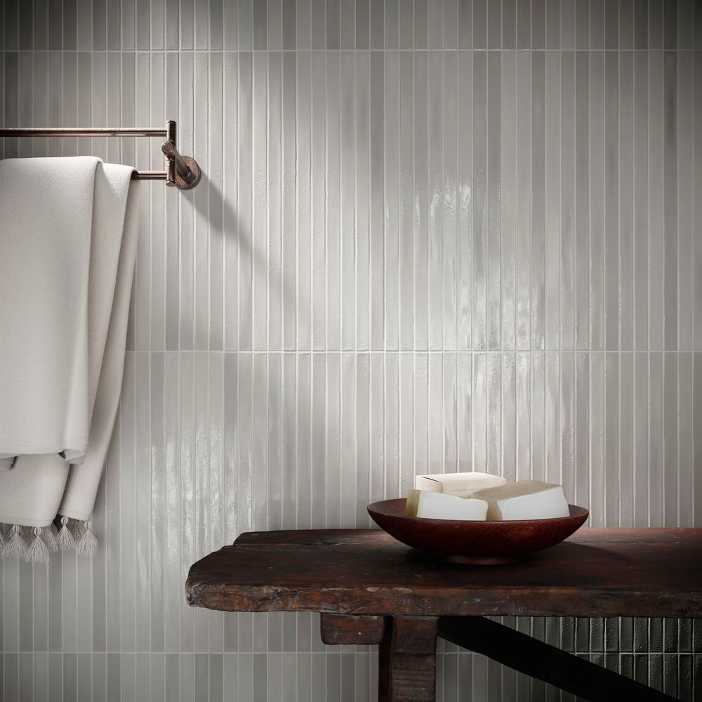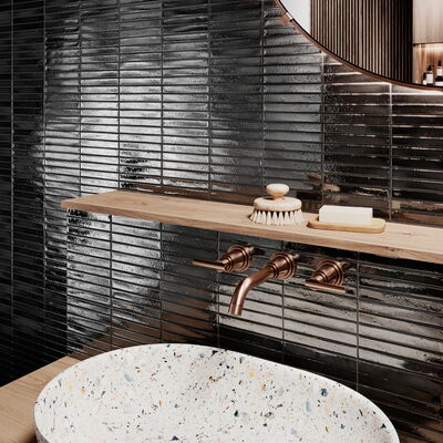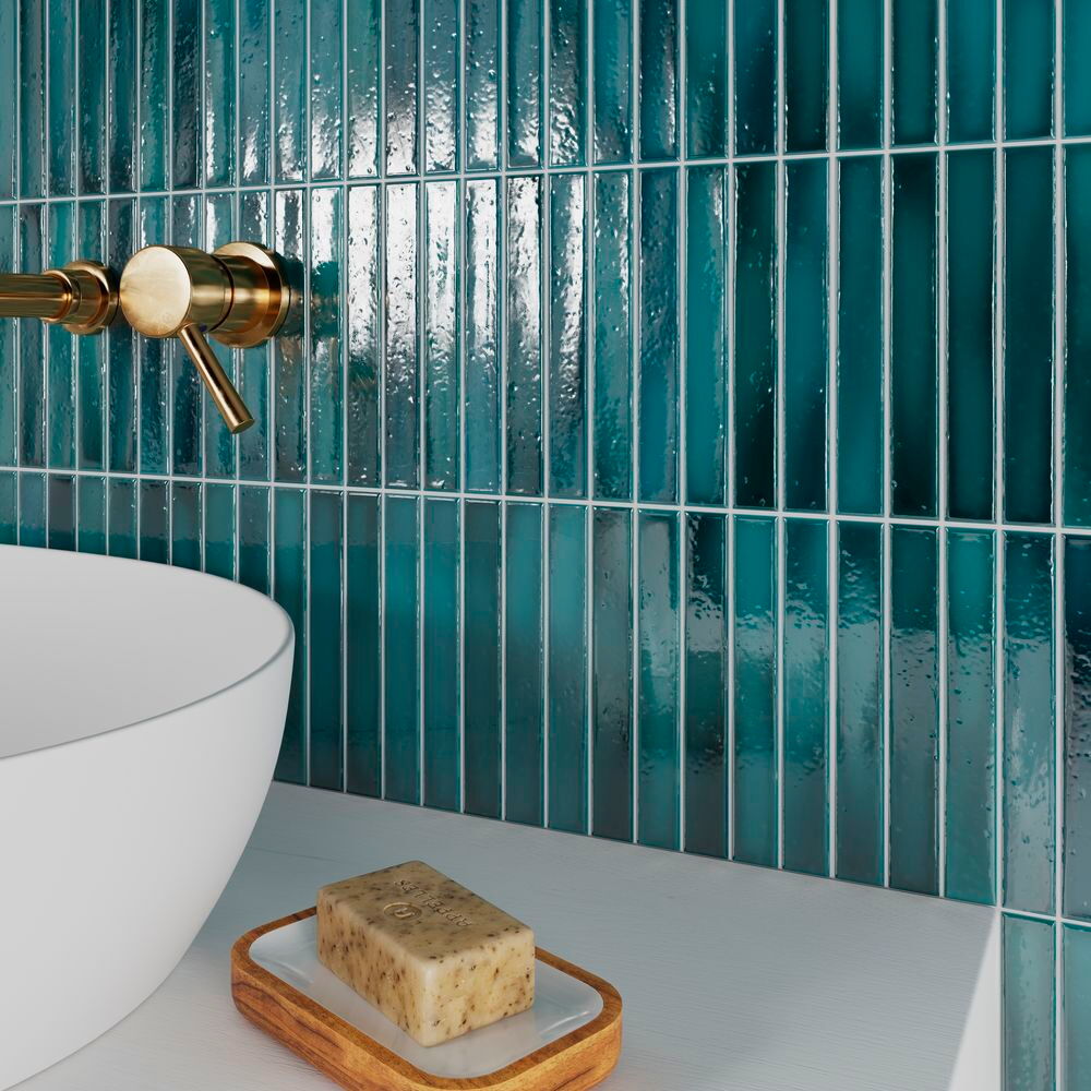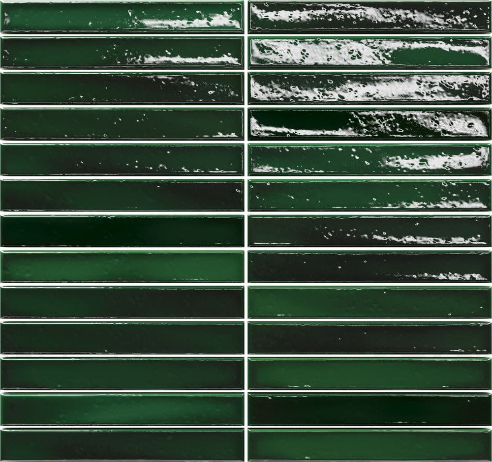 Wandfliesen im Format 2 x 45 cm. Vormontiert auf Matten bestechen diese schmalen Fliesen nicht nur durch ihre außergewöhnliche Form, sondern auch durch ihre Oberfläche: Mit Craquelé-Glasur in kräftigen Farben oder eher dezent mit glatter Glasur schaffen sie durch ihre kräftigen Nuancen ein unvergleichliches Farbenspiel an allen Wänden. Erhältlich in vollen Kartons: LongStick 48 Fliesen / 8 Matten à 6 Fliesen (0,48 m²/Karton), ShortStick 234 Fliesen / 9 Matten à 26 Fliesen (0,77 m²/Karton).