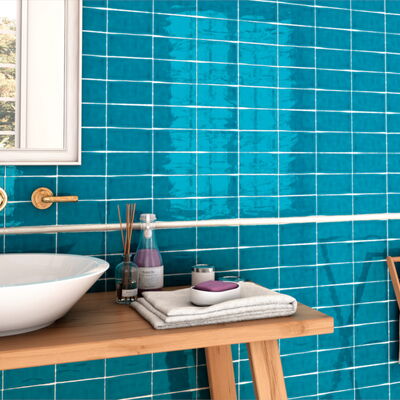 Wandfliesen im Format 7,5 x 15 cm mit Craquelé-Oberfläche. Alle Basisfliesen sind nur in vollen Quadratmetern erhältlich.