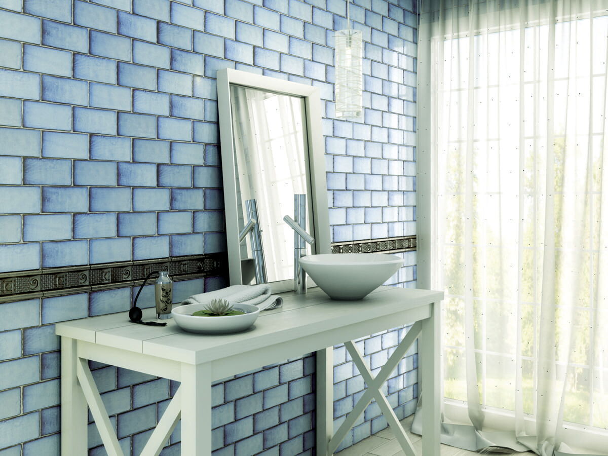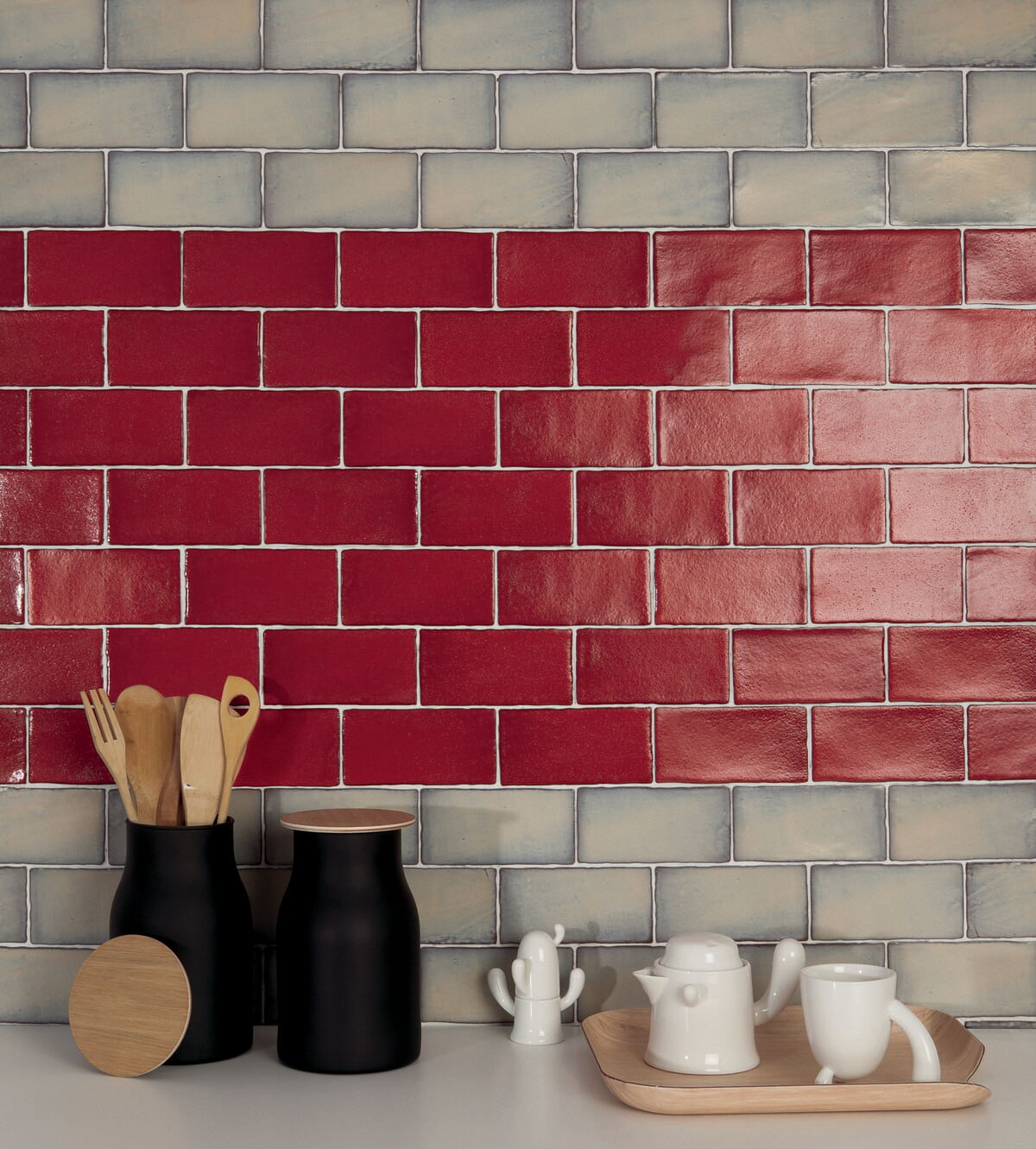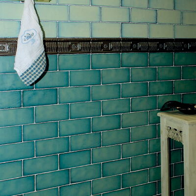 Wandfliesen im Format 7,5 x 15 cm, mit Spezialbrand. Alle Basisfliesen sind nur in vollen Quadratmetern erhältlich.