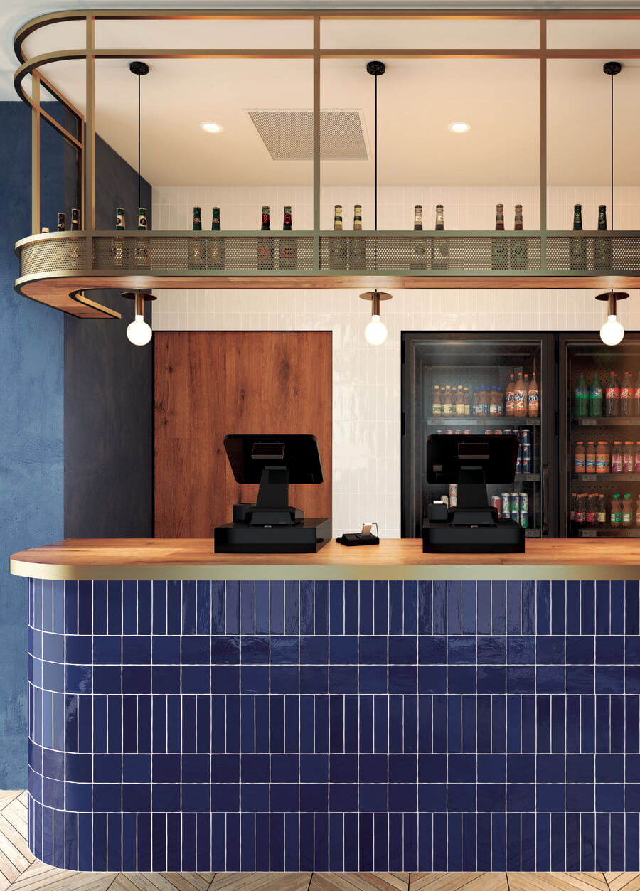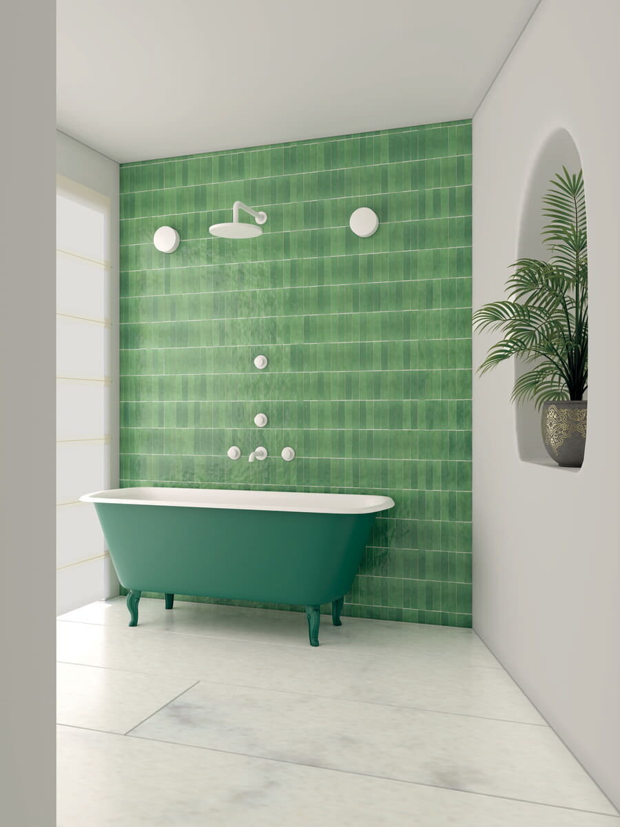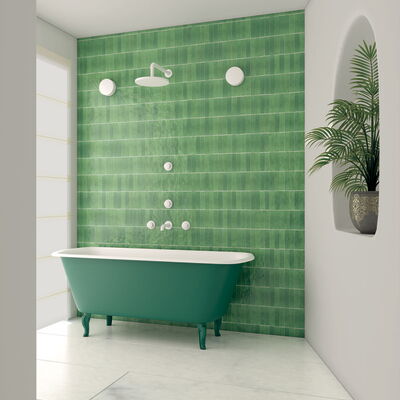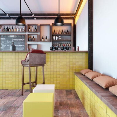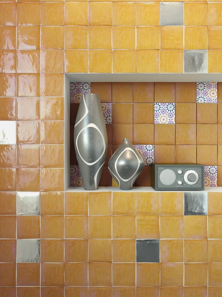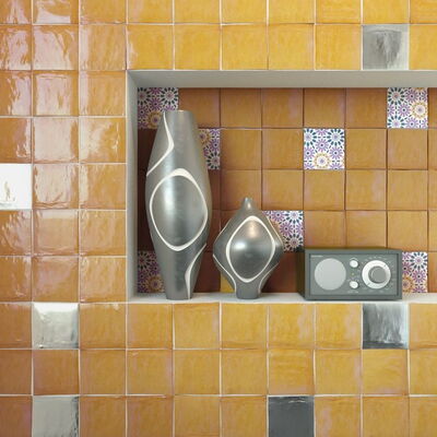 Wandfliesen im Format 10 x 10 cm und 5 x 20 cm. Glänzende Oberfläche. Inspiriert durch die traditionellen Zelliges aus Marokko bezaubern diese Fliesen vor allem durch ihre intensiven Farben, ihre lebhafte Oberfläche und ihre bewusst unregelmäßige Form. Die Fliesen der Serie Zelij 10 x 10 cm sind in Einheiten zu je 0,81 Quadratmetern (81 Fliesen) erhältlich. Die Fliesen der Serie Zelij 5 x 20 cm sind in Einheiten zu je 0,46 Quadratmetern (46 Fliesen) erhältlich.