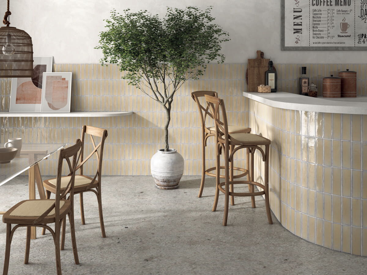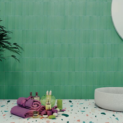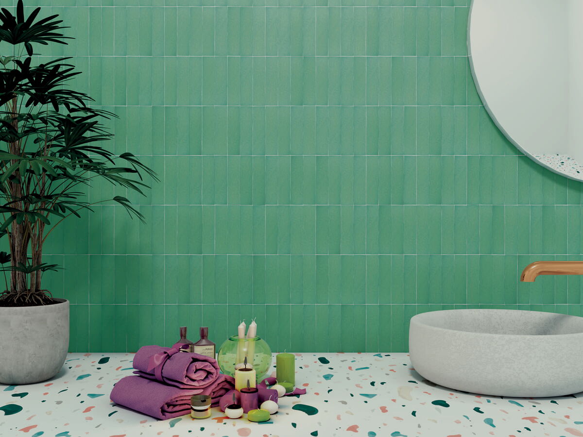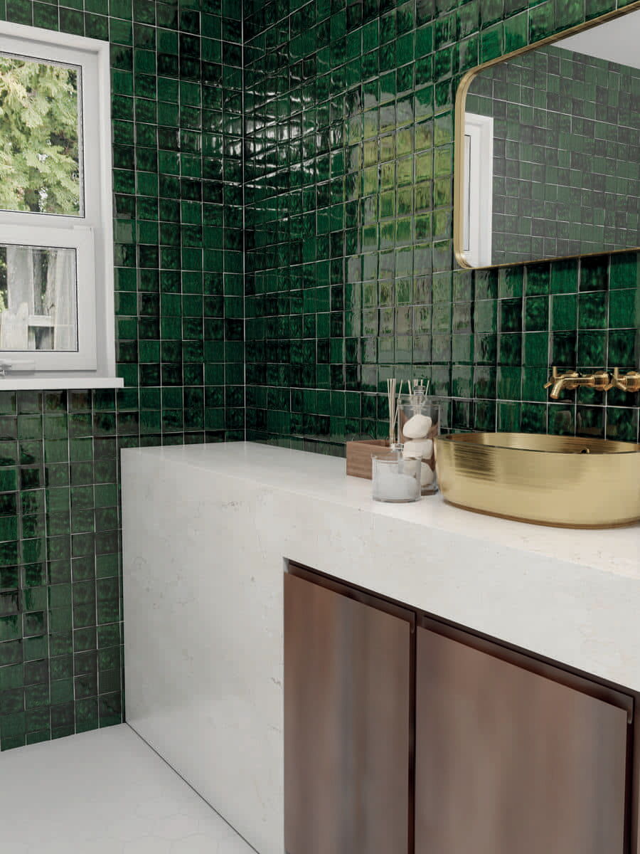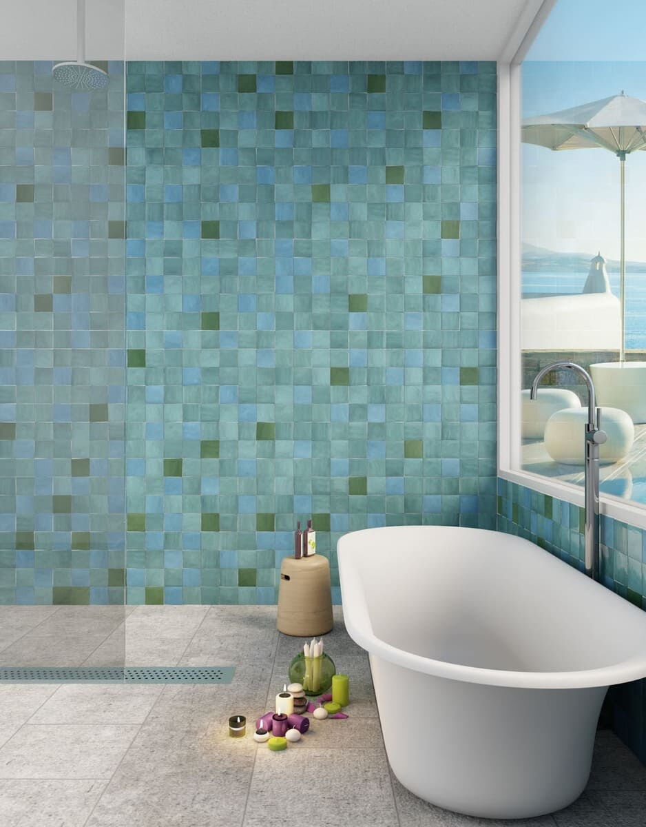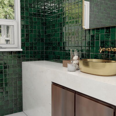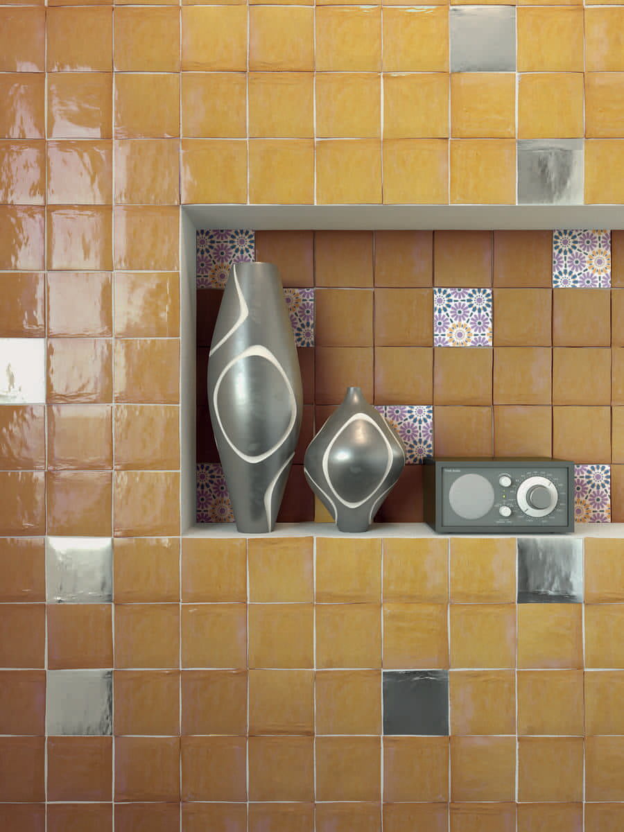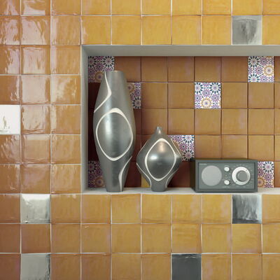 Wandfliesen im Format 10 x 10 cm und 5 x 20 cm mit Spezialbrand. Traditionelle Zelliges aus Marokko standen Pate für diese Fliesen mit einer im Spezialbrand überzeugenden Oberfläche. Auffallend und attraktiv auch die bewusst unregelmäßige Form. Die Fliesen der Serie Zelij Special 10 x 10 cm sind in Einheiten zu je 0,81 Quadratmetern (81 Fliesen) erhältlich. Die Fliesen der Serie Zelij Special 5 x 20 cm sind in Einheiten zu je 0,46 Quadratmetern (46 Fliesen) erhältlich.