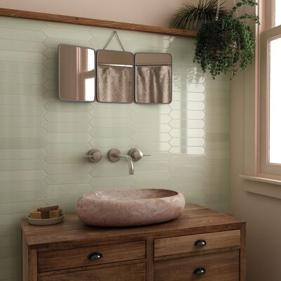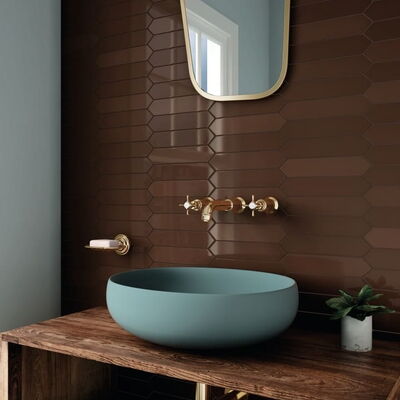 Keramische, glänzende Wandfliesen in zehn attraktiven Farben. Unterschiedliche Farbschattierungen innerhalb einer Farbe für mehr Lebendigkeit. Format: 5x20 cm.