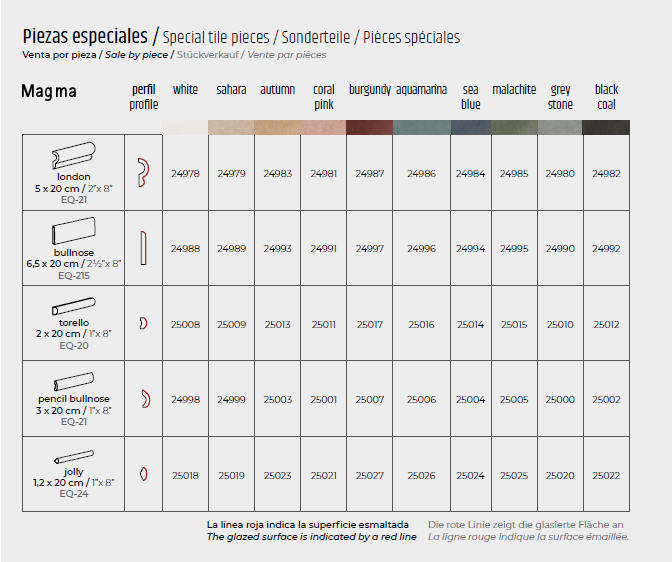 Keramische Wandfliesen (Feinsteinzeug) in 20 verschiedenen Farben. Zwei attraktive Formate: 6,5x20 cm und 13,2x13,2 cm. Unterschiedliche Farbschattierungen innerhalb einer Farbe für mehr Lebendigkeit. Bei Bestellungen bitte die Farbe angeben.