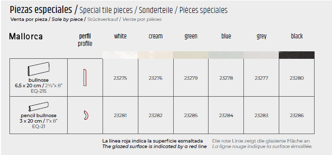 Keramische Wandfliesen mit dezent rustikaler Oberlächenbeschaffenheit für eine lebendige und individuelle Wandgestaltung. Formate: 10x10 cm oder 6,5x20 cm. Bei Bestellungen bitte die Farbe und Artikelnummer angeben.