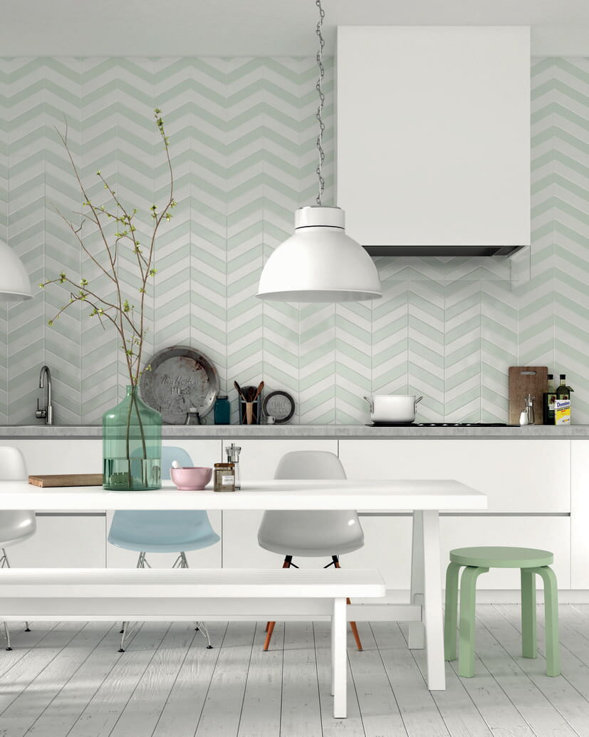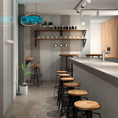 Wandfliesen im Rauten-Format 6,4 x 26 cm. Diese Fliesen sind nur in vollen Quadratmetern erhältlich. Bei Bestellungen bitte die Farbe angeben. Bitte beachten Sie, dass es bei dieser Serie "rechte" und "linke" Fliesen gibt.