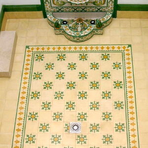 Informationen gemäß GPSR: Produkt: Zementfliese, handgefertigt; Hersteller: MOSAICOS ARTESANOS FELIX GARCIA, S.L., Avd. Pedro Iglesias BQ 3, Local bajo, 14940 Cabra, Córdoba, Spanien; Kontakt: info@mosaicosartesanos.com; Technische Informationen