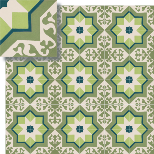 Informationen gemäß GPSR: Produkt: Zementfliese, handgefertigt; Hersteller: MOSAICOS ARTESANOS FELIX GARCIA, S.L., Avd. Pedro Iglesias BQ 3, Local bajo, 14940 Cabra, Córdoba, Spanien; Kontakt: info@mosaicosartesanos.com; Technische Informationen