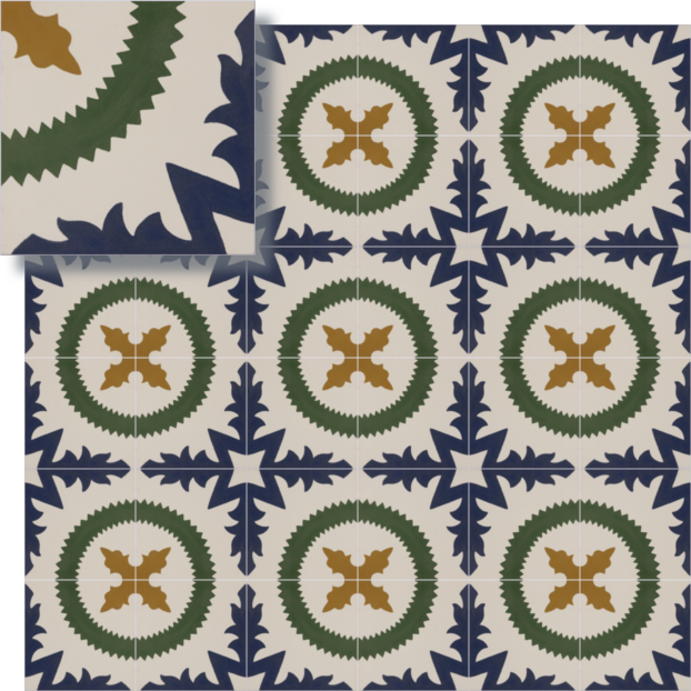 Informationen gemäß GPSR: Produkt: Zementfliese, handgefertigt; Hersteller: MOSAICOS ARTESANOS FELIX GARCIA, S.L., Avd. Pedro Iglesias BQ 3, Local bajo, 14940 Cabra, Córdoba, Spanien; Kontakt: info@mosaicosartesanos.com; Technische Informationen