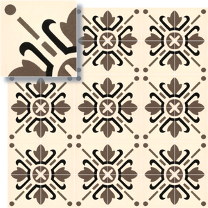 Informationen gemäß GPSR: Produkt: Zementfliese, handgefertigt; Hersteller: MOSAICOS ARTESANOS FELIX GARCIA, S.L., Avd. Pedro Iglesias BQ 3, Local bajo, 14940 Cabra, Córdoba, Spanien; Kontakt: info@mosaicosartesanos.com; Technische Informationen