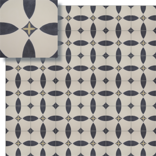 Informationen gemäß GPSR: Produkt: Zementfliese, handgefertigt; Hersteller: MOSAICOS ARTESANOS FELIX GARCIA, S.L., Avd. Pedro Iglesias BQ 3, Local bajo, 14940 Cabra, Córdoba, Spanien; Kontakt: info@mosaicosartesanos.com; Technische Informationen