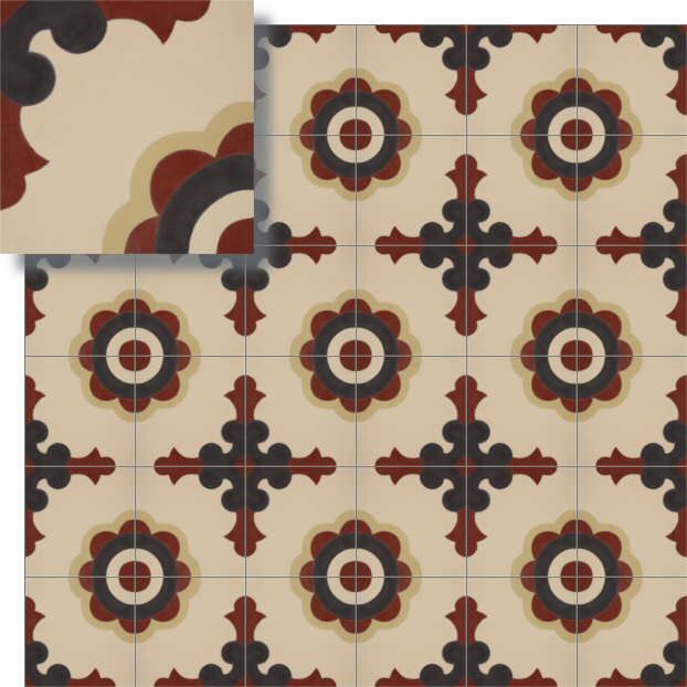 Informationen gemäß GPSR: Produkt: Zementfliese, handgefertigt; Hersteller: MOSAICOS ARTESANOS FELIX GARCIA, S.L., Avd. Pedro Iglesias BQ 3, Local bajo, 14940 Cabra, Córdoba, Spanien; Kontakt: info@mosaicosartesanos.com; Technische Informationen
